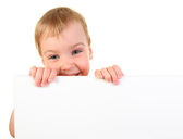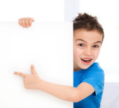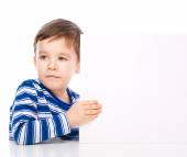 ładny chłopiec jest przytrzymanie puste pusty transparent