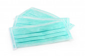 Medyczne maski ochronne w kolorze niebieskim izolowane na białym tle, trzy jednostki
