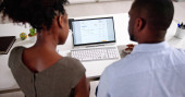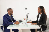 Afroamerykanin Business Man pracownik pracuje w biurze z kolegą