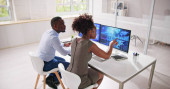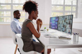 Zdjęcie "Afroamerykanin Business Man pracownik pracuje w biurze z kolegą" może być wykorzystywane do celów osobistych i komercyjnych zgodnie z warunkami zakupionej licencji Royalty-free. Obraz jest dostępny do pobrania w jakości wysokiej rozdzielczości do 5760x3840.