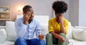 Smutne problemy rodzinne i rozwód. Kobieta ignorująca mężczyznę