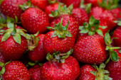 Zdjęcie "Z góry zbliżenie świeżych dojrzałych truskawek z zielonymi liśćmi jako tłem reprezentującym koncepcję zdrowej żywności" może być wykorzystywane do celów osobistych i komercyjnych zgodnie z warunkami zakupionej licencji Royalty-free. Obraz jest dostępny do pobrania w jakości wysokiej rozdzielczości do 5760x3840.