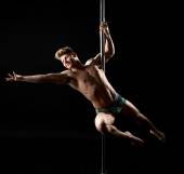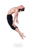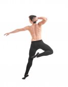 Muskularny mężczyzna półnagie skoki, na białym tle na biały