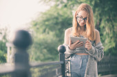 Zdjęcie "Piękna stylowa kobieta spacerująca w wiosenny dzień i trzymająca telefon komórkowy. Komunikacja telefoniczna. Koncepcja miejskiego stylu życia. Sprawdź portale społecznościowe, wysyłaj SMS." może być wykorzystywane do celów osobistych i komercyjnych zgodnie z warunkami zakupionej licencji Royalty-free. Obraz jest dostępny do pobrania w jakości wysokiej rozdzielczości do 5760x3840.