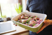 Zbliżenie pary seniorów przygotowującej wspólnie lunch.