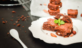 Deski z kawałkami smacznych czekoladowych ciasteczek i lodów na ciemnym tle