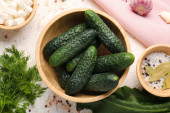 Zdjęcie "Deska ze świeżymi ogórkami i składnikami do konserwacji na jasnodrewnianym tle" może być wykorzystywane do celów osobistych i komercyjnych zgodnie z warunkami zakupionej licencji Royalty-free. Obraz jest dostępny do pobrania w jakości wysokiej rozdzielczości do 5760x3840.