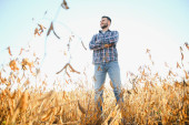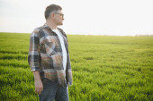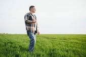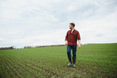 Zdjęcie "Rolnik pracuje na polu zasianym wiosną. Agronom chodzi po ziemi, oceniając zaorane pole jesienią. Rolnictwo. Inteligentne technologie rolnicze" może być wykorzystywane do celów osobistych i komercyjnych zgodnie z warunkami zakupionej licencji Royalty-free. Obraz jest dostępny do pobrania w jakości wysokiej rozdzielczości do 5760x3840.