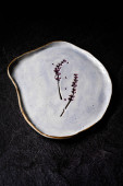 Zestaw ceramicznych, stylowych zastaw stołowych, wystroju stołu i menu żywności