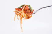 Zdjęcie "Bolognese spaghetti na widelcu" może być wykorzystywane do celów osobistych i komercyjnych zgodnie z warunkami zakupionej licencji Royalty-free. Obraz jest dostępny do pobrania w jakości wysokiej rozdzielczości do 5760x3840.