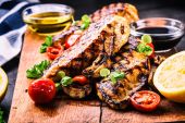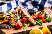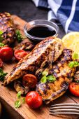 Stek piersi kurczaka oliwy z oliwek Pomidory czereśniowe pieprz i rozmaryn zioła.
