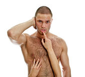 Mężczyzna niezadowolony słuchania sekret, który kobieta jest Szeptanie