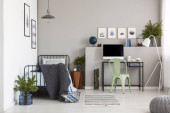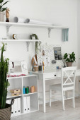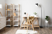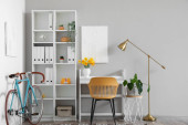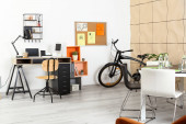 Wnętrze nowoczesnego biura z wygodnym miejscem pracy i rowerem