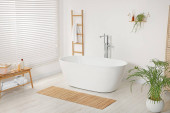 Zdjęcie "Piękne stylowe wnętrze łazienki z lustrem i umywalką" może być wykorzystywane do celów osobistych i komercyjnych zgodnie z warunkami zakupionej licencji Royalty-free. Obraz jest dostępny do pobrania w jakości wysokiej rozdzielczości do 5760x3840.