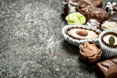 Zdjęcie "Czekoladowe słodkości na płycie. Na tle drewnianych." może być wykorzystywane do celów osobistych i komercyjnych zgodnie z warunkami zakupionej licencji Royalty-free. Obraz jest dostępny do pobrania w jakości wysokiej rozdzielczości do 5760x3840.