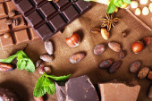 Zdjęcie "Kawałki czekolady z liści. Na tle drewnianych." może być wykorzystywane do celów osobistych i komercyjnych zgodnie z warunkami zakupionej licencji Royalty-free. Obraz jest dostępny do pobrania w jakości wysokiej rozdzielczości do 5760x3840.