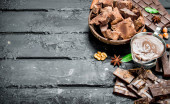 Zdjęcie "Kawałki czekoladę w misce. Na tle drewnianych." może być wykorzystywane do celów osobistych i komercyjnych zgodnie z warunkami zakupionej licencji Royalty-free. Obraz jest dostępny do pobrania w jakości wysokiej rozdzielczości do 5760x3840.