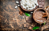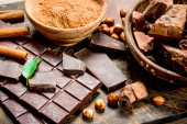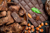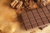Pasta czekoladowa z cynamonem i plasterkami czekolady. Na drewnianym tle