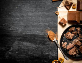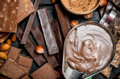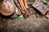 Pasta czekoladowa z cynamonem i plasterkami czekolady. Na drewnianym tle
