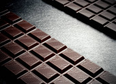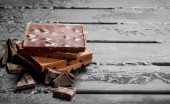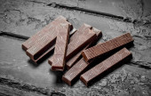 Trochę batoników czekoladowych. Na czarnym tle rustykalnym.