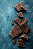 Różne rodzaje czekolady. Na czarnym tle rustykalnym.