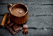 Czekoladowe tło. Zróżnicowany asortyment czekolady pastą. Na czarnym tle rustykalnym.