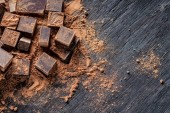 Ciemna czekolada z kakao. Na czarnym tle rustykalnym.