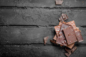 Asortyment różnych czekolady z orzechami i cynamon. Na tle drewnianych.
