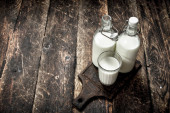 Zdjęcie "Mleko w butelce. Na tle drewnianych ." może być wykorzystywane do celów osobistych i komercyjnych zgodnie z warunkami zakupionej licencji Royalty-free. Obraz jest dostępny do pobrania w jakości wysokiej rozdzielczości do 5760x3840.