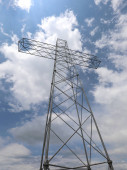 elektryczne wieża bez drutów przeciw błękitne niebo