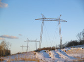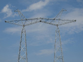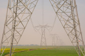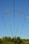 elektryczne wieże bez drutów przeciw błękitne niebo