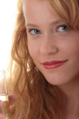 portret młodego szczęśliwy uśmiechający się włos z wewnątrz butelki perfum