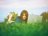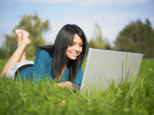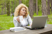 Zdjęcie "młoda kobieta za pomocą laptopa w parku" może być wykorzystywane do celów osobistych i komercyjnych zgodnie z warunkami zakupionej licencji Royalty-free. Obraz jest dostępny do pobrania w jakości wysokiej rozdzielczości do 5760x3840.