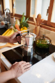 Uśmiechnięty młodzieniec jedzący płatki zbożowe na śniadanie w domu