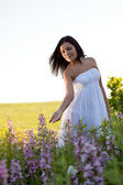 kobieta spaceru wzdłuż drogi