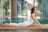 Zdjęcie "młoda kobieta robi ćwiczenia jogi" może być wykorzystywane do celów osobistych i komercyjnych zgodnie z warunkami zakupionej licencji Royalty-free. Obraz jest dostępny do pobrania w jakości wysokiej rozdzielczości do 5760x3840.