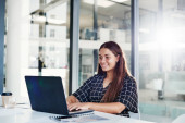 Zdjęcie "Portret młodej, odnoszącej sukcesy, białej bizneswoman siedzącej przy biurku pracującej na laptopie w Urzędzie Miasta" może być wykorzystywane do celów osobistych i komercyjnych zgodnie z warunkami zakupionej licencji Royalty-free. Obraz jest dostępny do pobrania w jakości wysokiej rozdzielczości do 5760x3840.