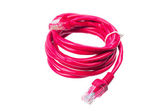 Płaskowyż czerwony ethernet (miedź, RJ45) paczkomin izolowany na białym tle