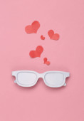 Zabawka tyranozaur rex z sercami na niebieskim tle. Romantyczny, miłość, koncepcja walentynek