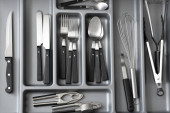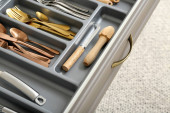 Zdjęcie "Szuflada otwarta kuchnia z różnymi sztućcami srebra, zbliżenie" może być wykorzystywane do celów osobistych i komercyjnych zgodnie z warunkami zakupionej licencji Royalty-free. Obraz jest dostępny do pobrania w jakości wysokiej rozdzielczości do 5760x3840.