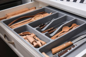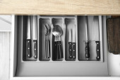 Zdjęcie "Otwarta szuflada z różnymi sztućcami srebra" może być wykorzystywane do celów osobistych i komercyjnych zgodnie z warunkami zakupionej licencji Royalty-free. Obraz jest dostępny do pobrania w jakości wysokiej rozdzielczości do 5760x3840.