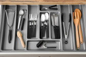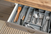 Zdjęcie "Otwarta szuflada z różnymi sztućcami srebra" może być wykorzystywane do celów osobistych i komercyjnych zgodnie z warunkami zakupionej licencji Royalty-free. Obraz jest dostępny do pobrania w jakości wysokiej rozdzielczości do 5760x3840.