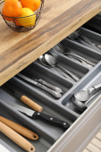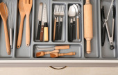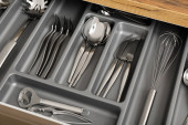 Otwarta szuflada z różnymi sztućcami srebra