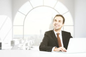 Zdjęcie "Jeden młody biznesmen" może być wykorzystywane do celów osobistych i komercyjnych zgodnie z warunkami zakupionej licencji Royalty-free. Obraz jest dostępny do pobrania w jakości wysokiej rozdzielczości do 5760x3840.