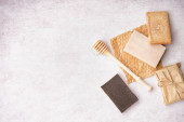 Closeup hand of chef baker in uniform blue apron cutting pizza at kitchen. High quality photo