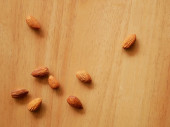 Kemiri lub Candlenut Seedson drewniane tło, składnik żywności