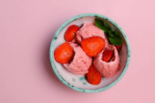 Zdjęcie "Lody rabarbarowe i truskawkowe, domowej roboty gelato sorbetowe, mrożony deser owocowy ze świeżym rabarem i plastrami truskawek, na białym stole kuchennym przestrzeń do kopiowania" może być wykorzystywane do celów osobistych i komercyjnych zgodnie z warunkami zakupionej licencji Royalty-free. Obraz jest dostępny do pobrania w jakości wysokiej rozdzielczości do 5760x3840.