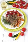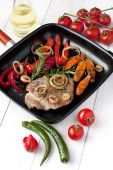 mięso z warzywami na patelni