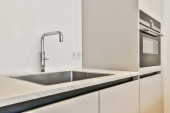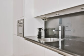 Zdjęcie "nowoczesna kuchnia z kapturami ze stali nierdzewnej i urządzeń na blat na tym zdjęciu pochodzi z góry" może być wykorzystywane do celów osobistych i komercyjnych zgodnie z warunkami zakupionej licencji Royalty-free. Obraz jest dostępny do pobrania w jakości wysokiej rozdzielczości do 5760x3840.
