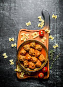 Kulki mięsne z ziół i pomidorów. Na tle rustykalnym